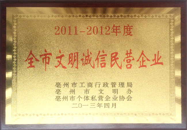 全市文明誠(chéng)信民營(yíng)企業(yè)